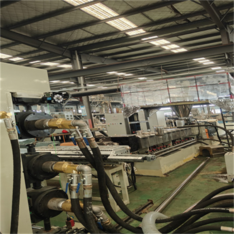 1. 工作原理:依靠直径150mm的单螺杆旋转产生压力与剪切力汽车防滑脚垫挤出机_车载脚垫生产设备_安徽蚌埠佳德设备,搭配机筒分段加热,让防滑用TPE、PVC等原料熔融塑化并均匀混合,同时排出原料中挥发物,再通过压力将熔体推送至T型平模头等对应模具,挤出成型后经冷却定型等工序制成防滑制品基材。